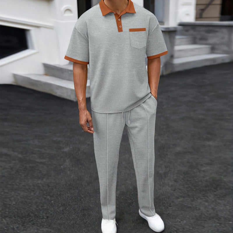 Herren sportliches Freizeit-Set mit gemütlichem Kragen und elastischen Hosen Aliams