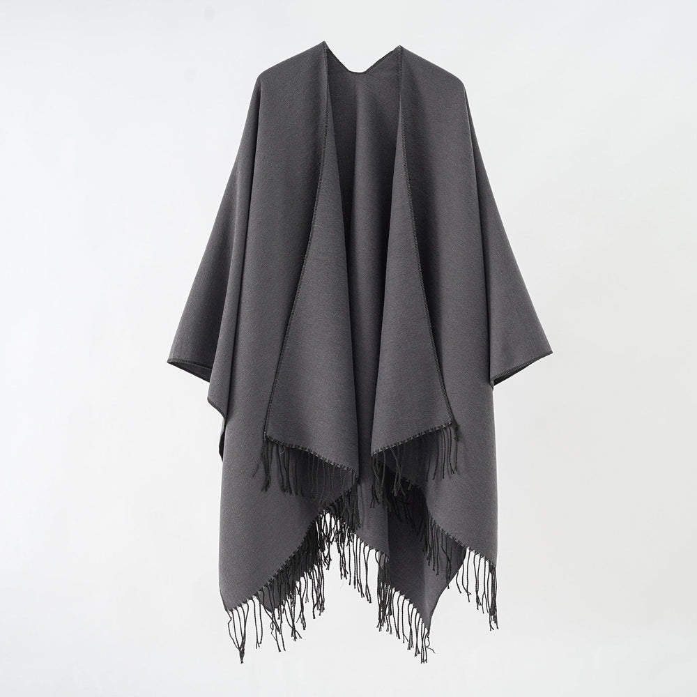 Damen Modischer Fransen-Poncho Aus Weichem Material mit Luxuriösem Fall Aliams