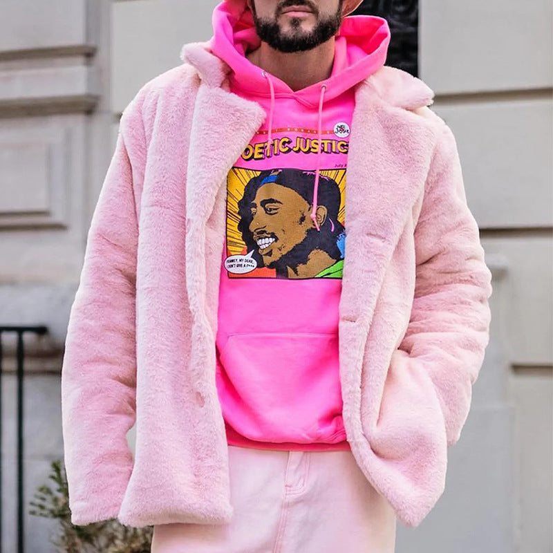 Herren kuschelige Teddy-Fleecejacke mit Hohem Kragen und Praktischen Taschen Aliams