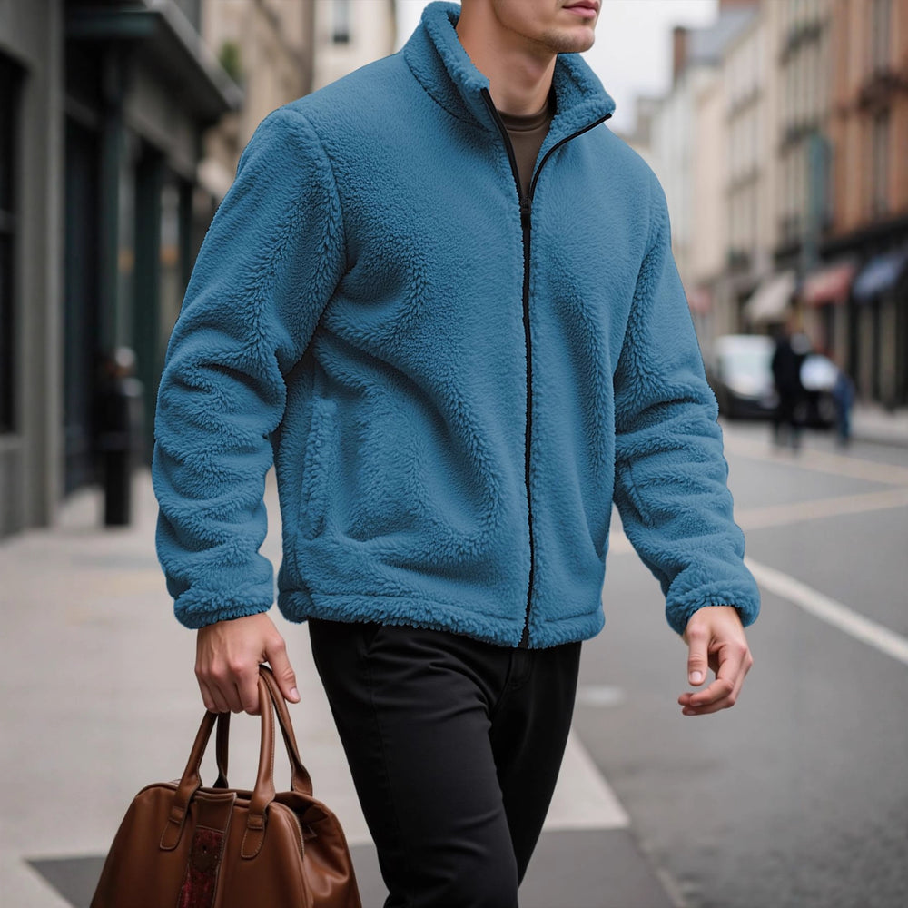 Herren kuschelige Fleecejacke mit hohem Kragen und praktischen Taschen Aliams