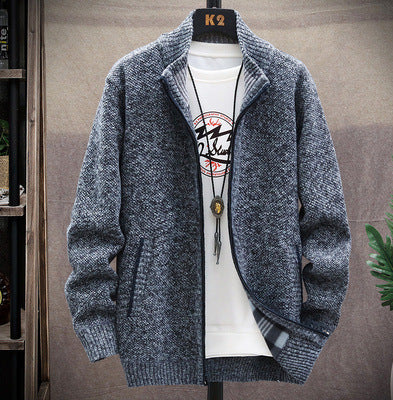 Herren lässige Strickjacke mit hohem Kragen und praktischem Reißverschluss Aliams