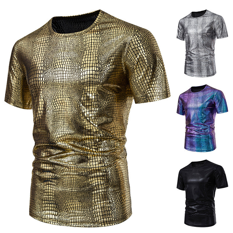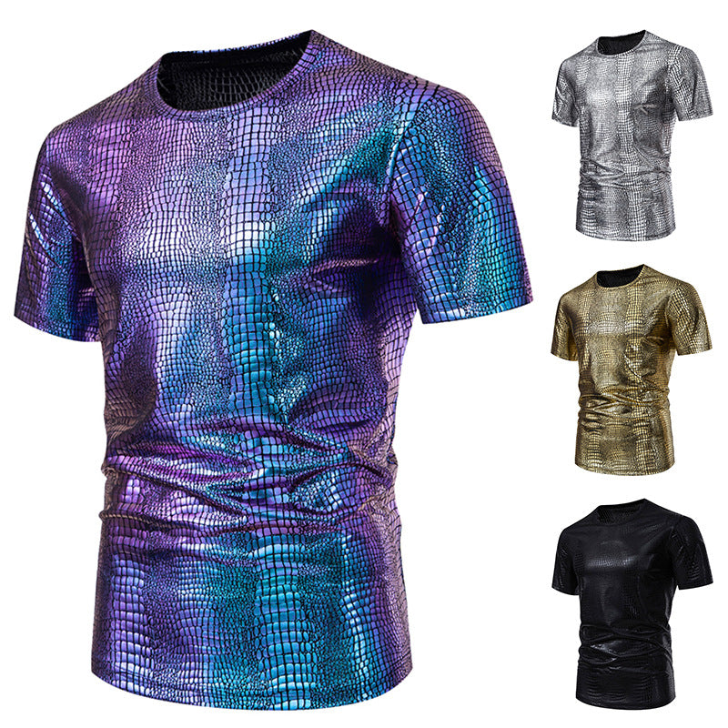 Herren Kurzarmshirt mit schimmerndem Schlangenmuster Aliams