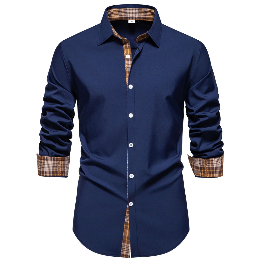 Herren Langarmhemd mit modernem Karodetail und feiner Baumwollstruktur Aliams