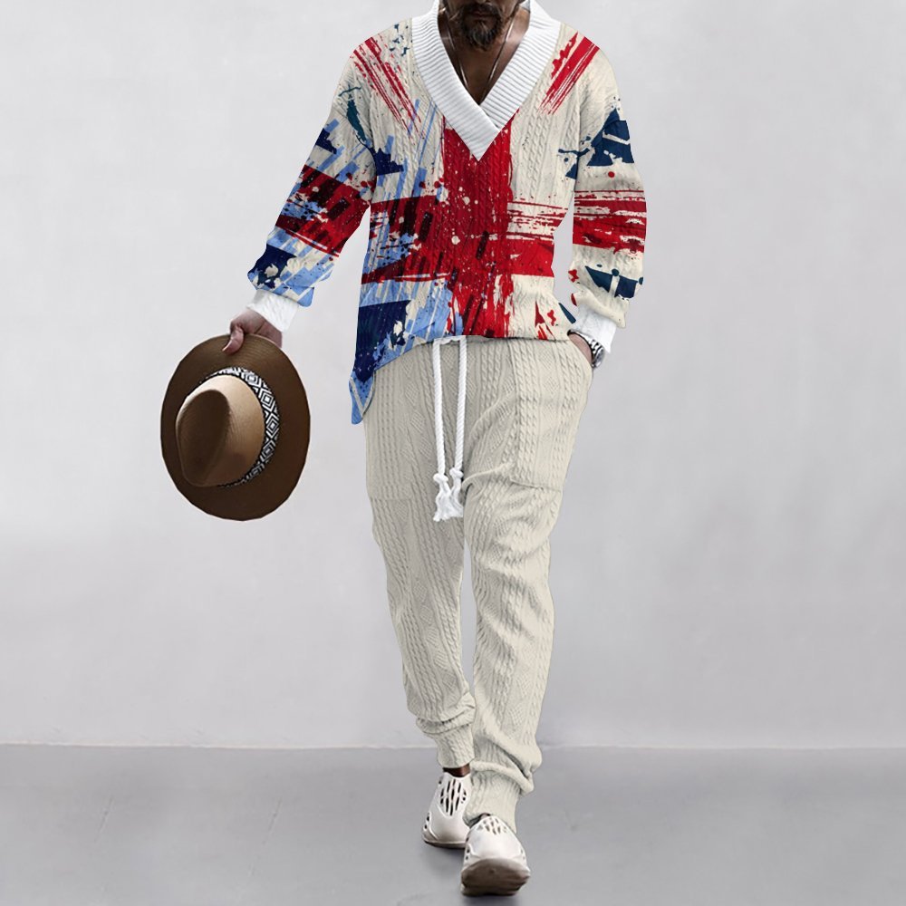 Herren lässiger Pullover mit britischem Motiv und lässigen Jogginghosen Aliams