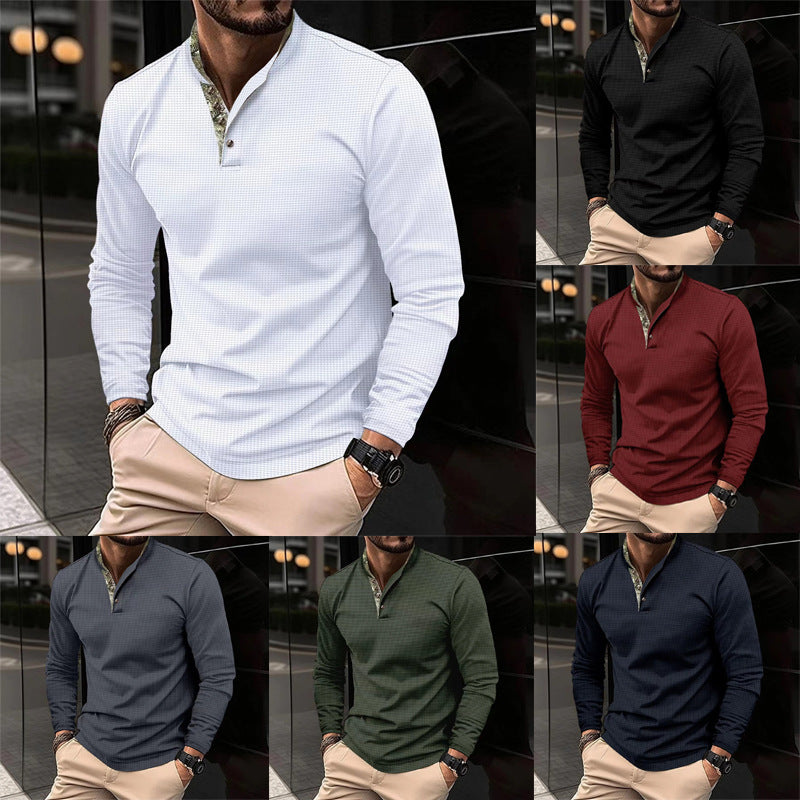 Herren langärmliges T-Shirt mit Stehkragen und figurbetonter Passform Aliams