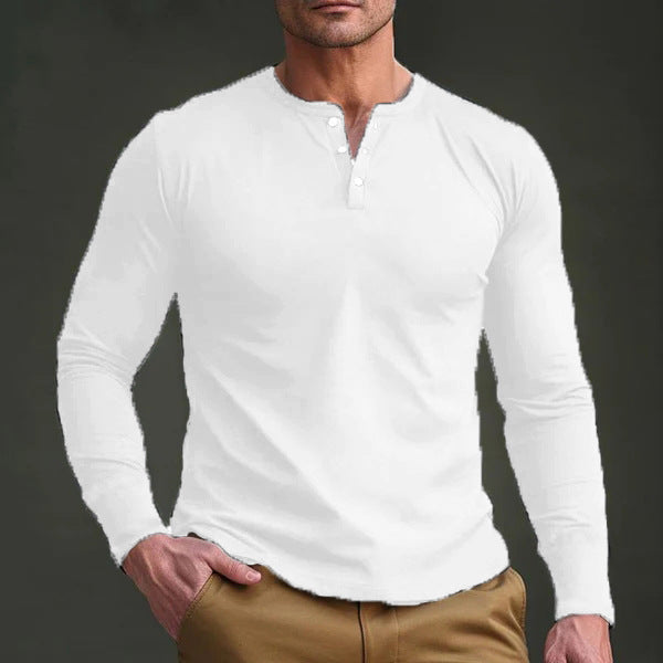 Herren Langarm-Henley-Shirt mit Knopfleiste und Brusttasche Aliams