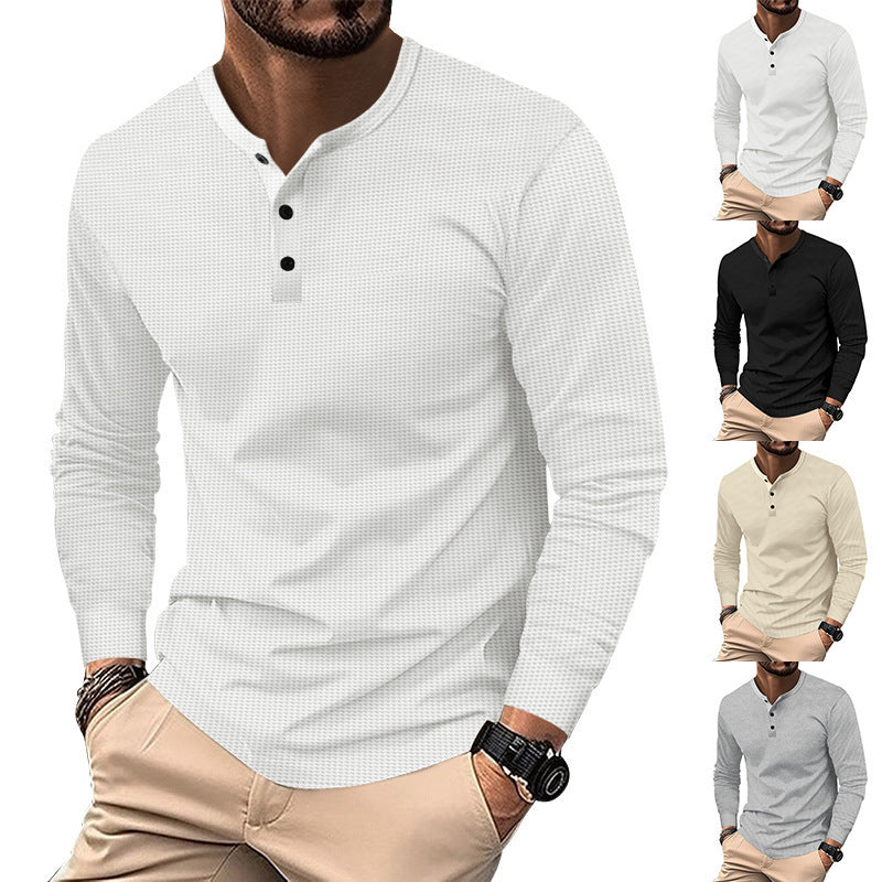 Herren Langarm-Henley-Shirt aus atmungsaktivem Baumwollmix Aliams