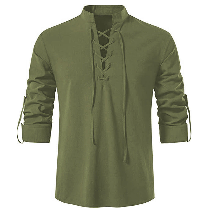 Herren lässiges Langarmhemd mit modernem Schnürdesign und hochqualitativer Baumwolle Aliams