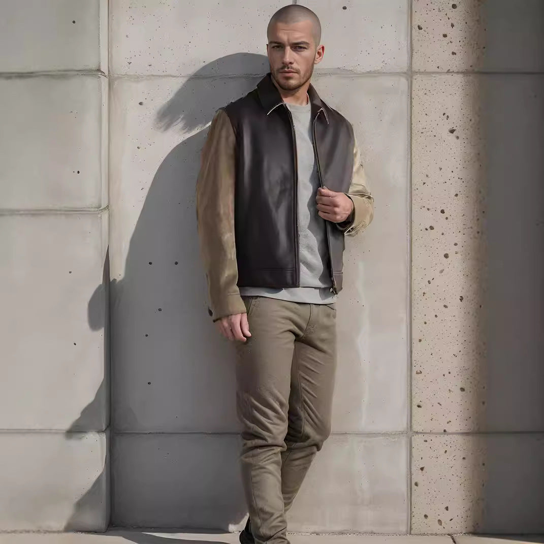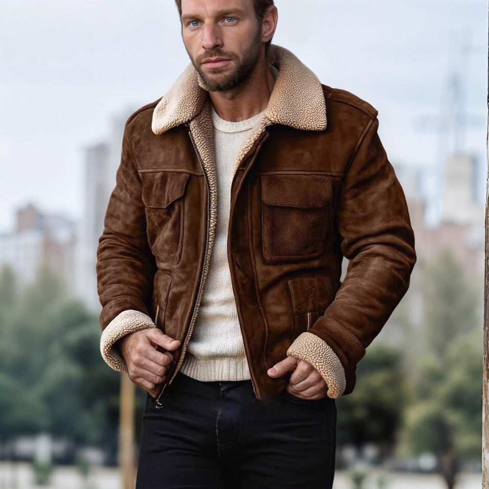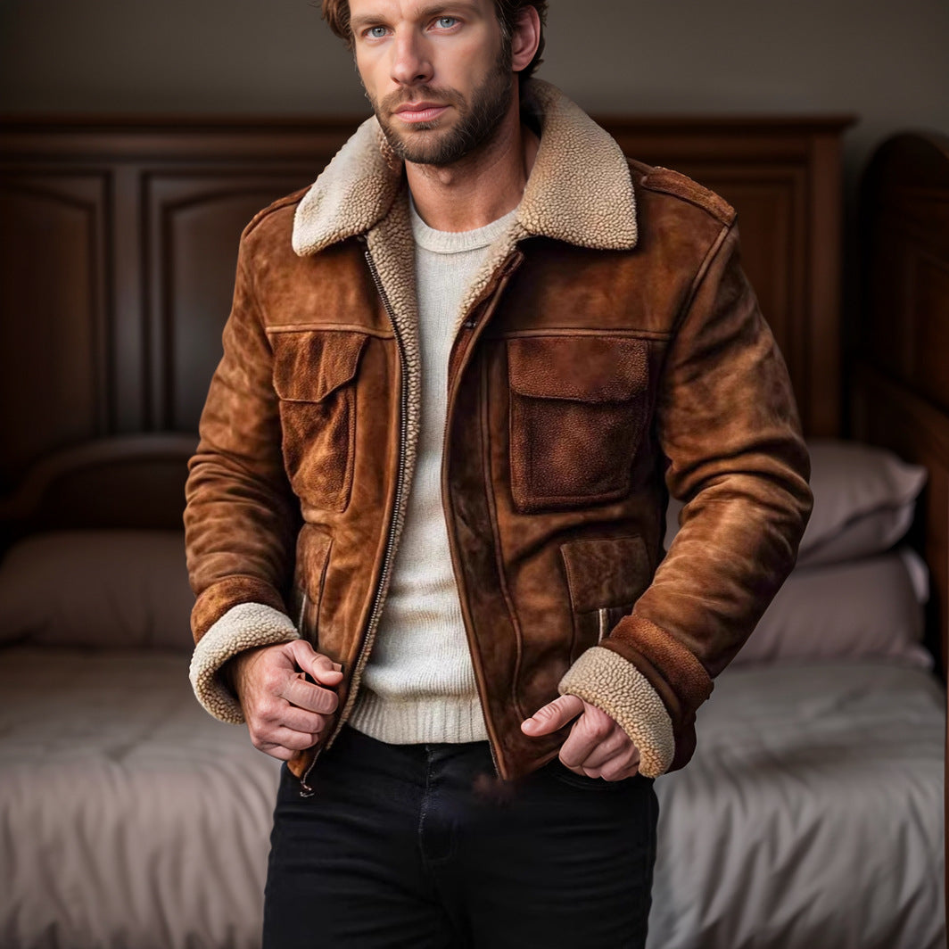 Herren Lederjacke mit warmem Sherpa-Futter und praktischen Taschen Aliams