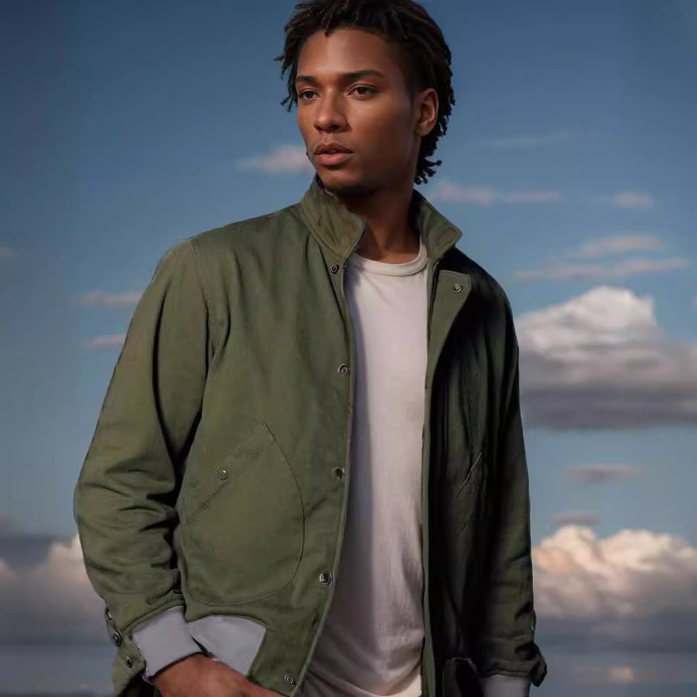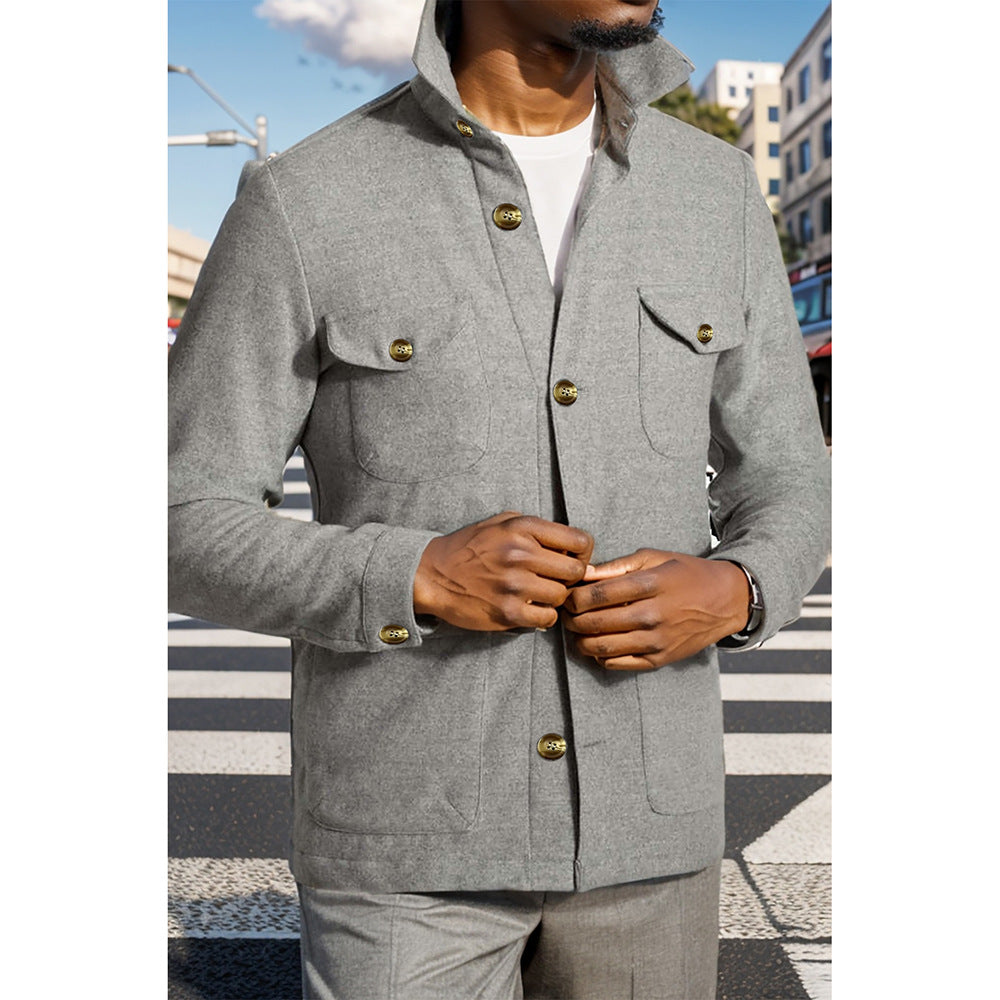 Herren modische Übergangsjacke mit hohen Kragen und aufgesetzten Taschen Aliams
