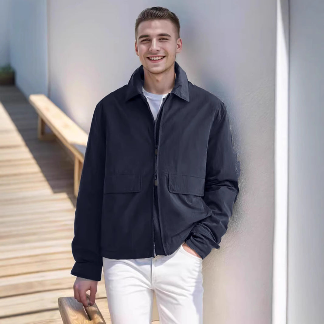 Herren leichte Windjacke mit hochabschließendem Kragen und praktischen Reißverschlusstaschen Aliams