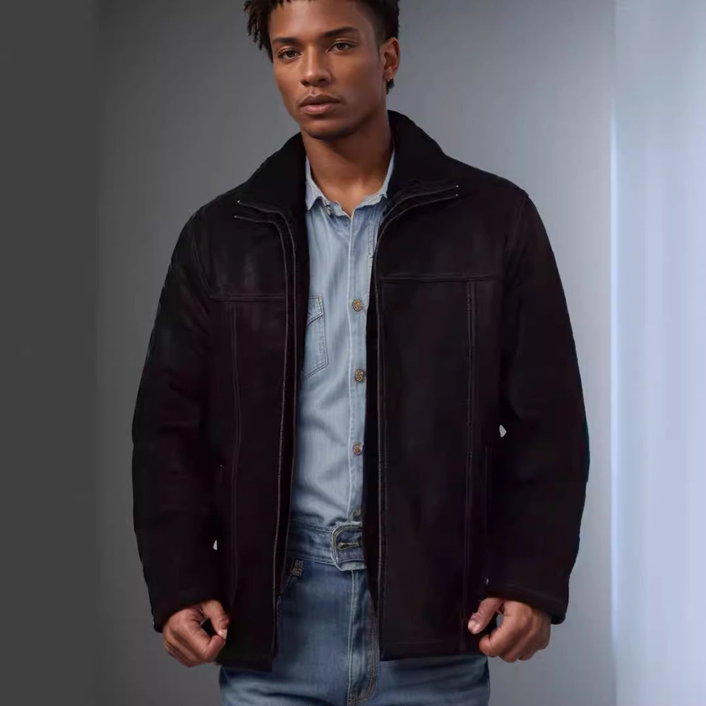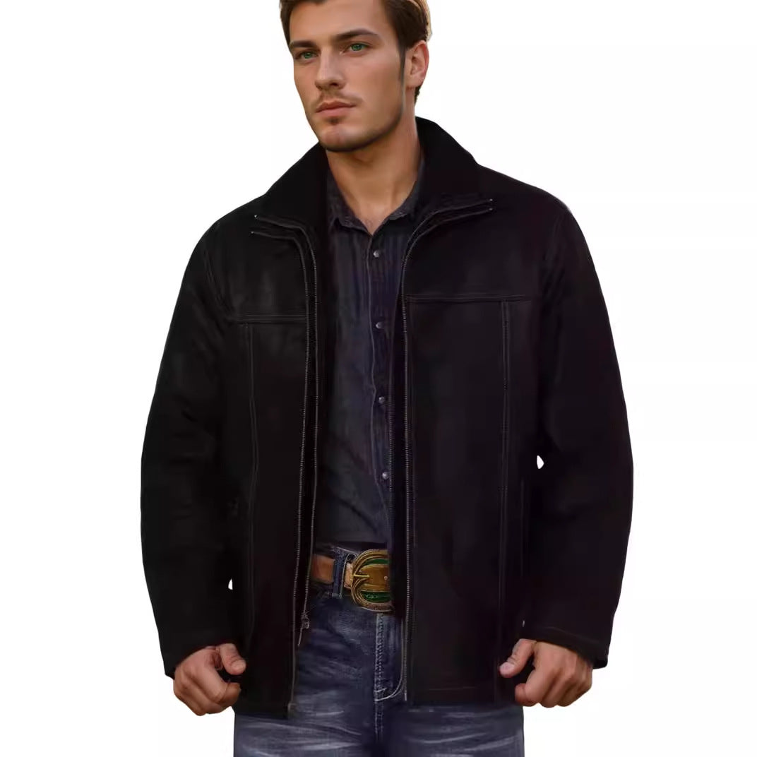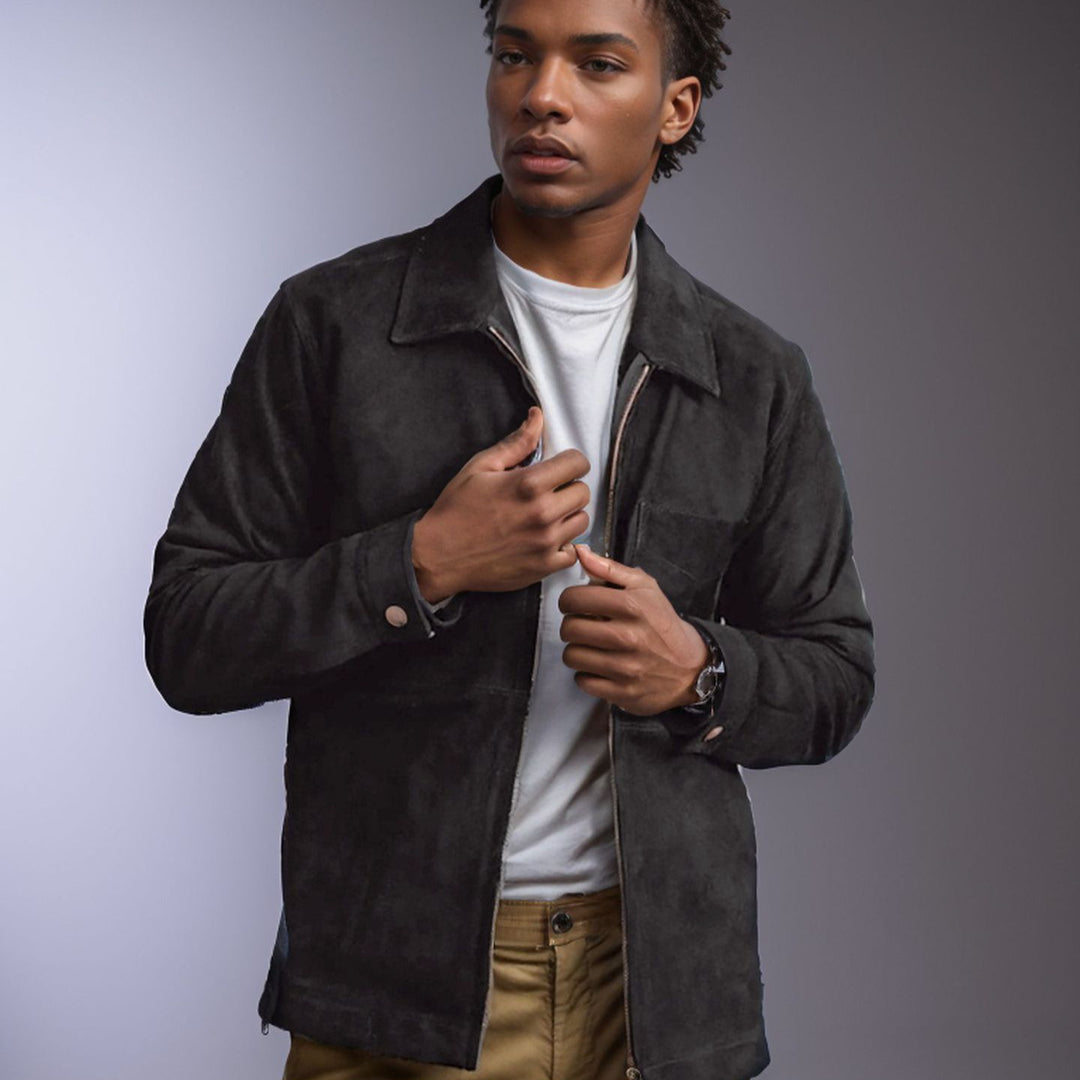 Herren lässige Wildlederjacke mit Stehkragen und seitlichen Reißverschlusstaschen Aliams