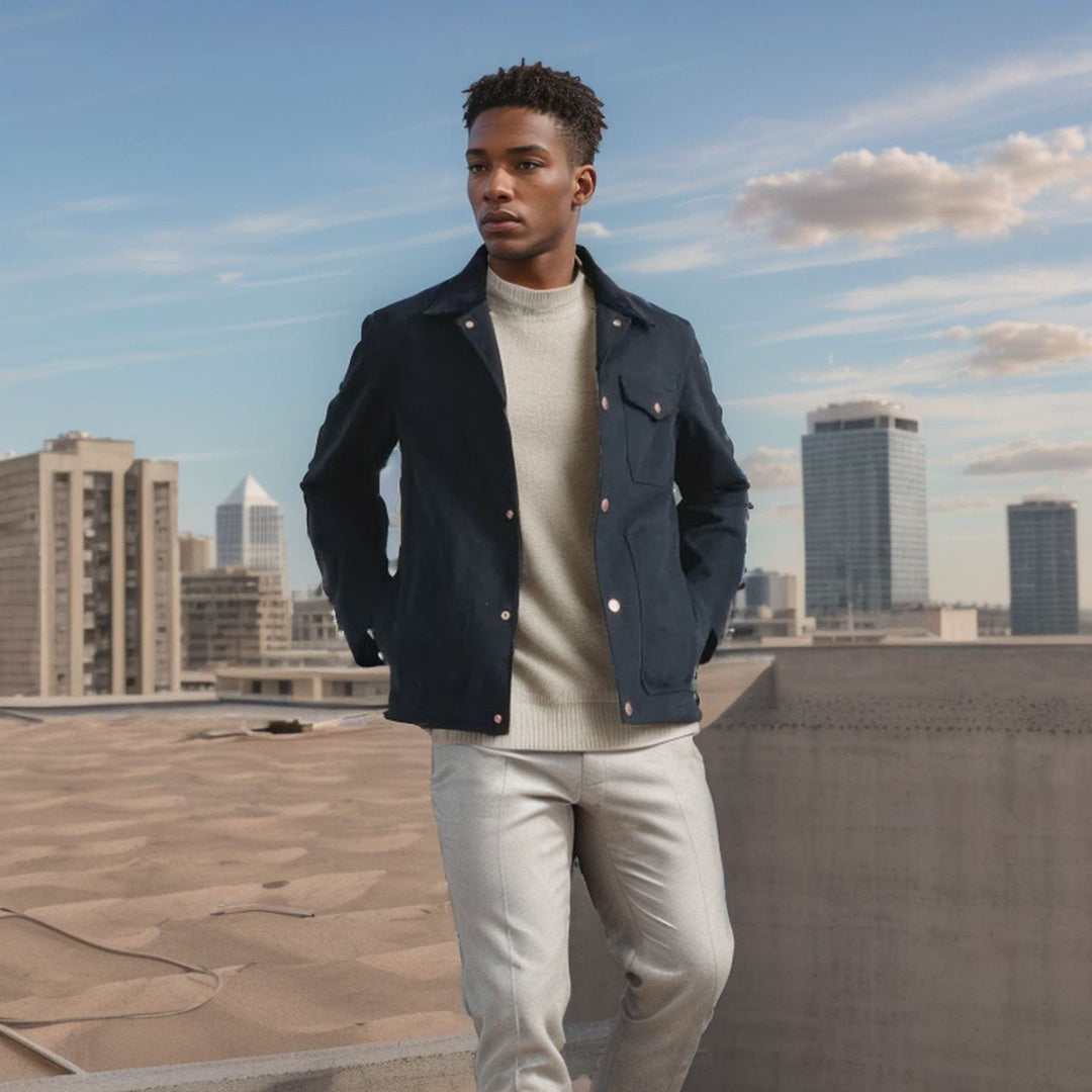 Herren lässige Wildlederjacke mit praktischen Einschubtaschen und Stehkragen Aliams