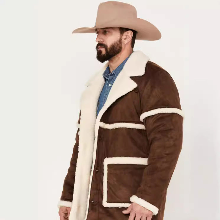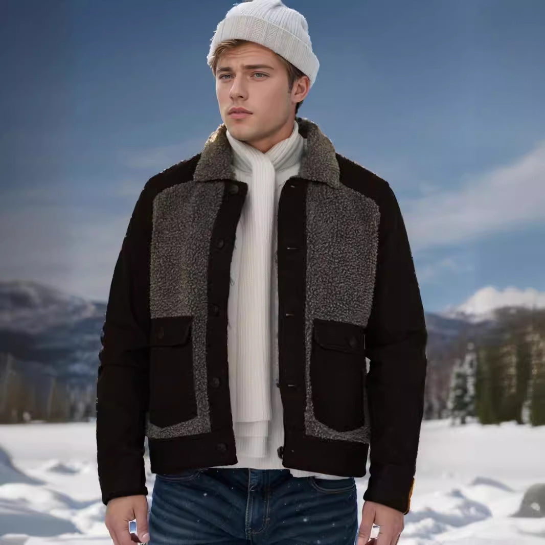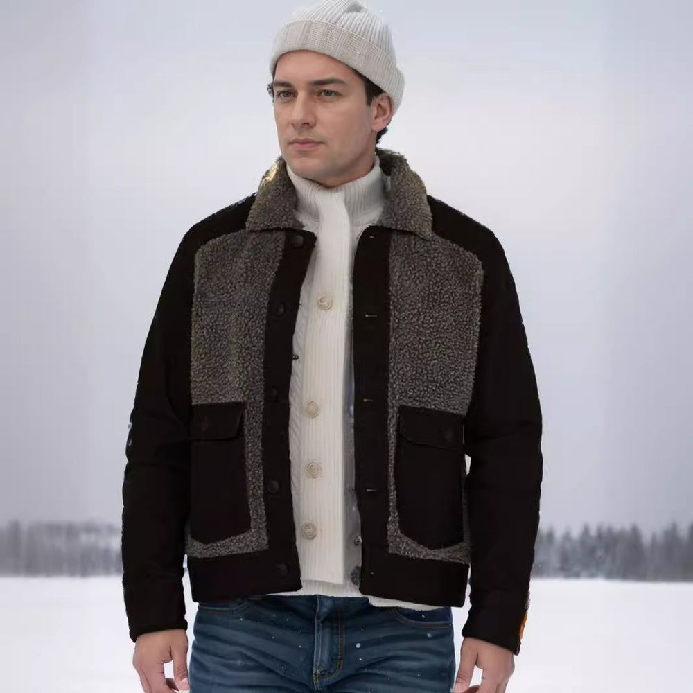 Herren Lammfelljacke mit breitem Kragen und praktischen Taschen Aliams