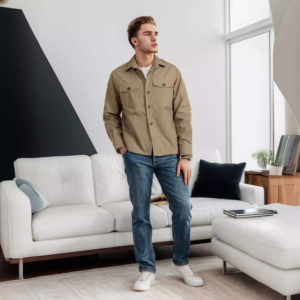 Herren lässige Utility-Jacke mit praktischen Klappentaschen und modernem Schnitt Aliams