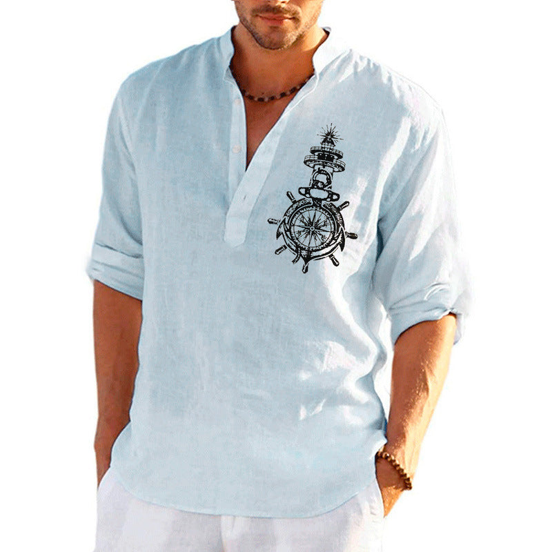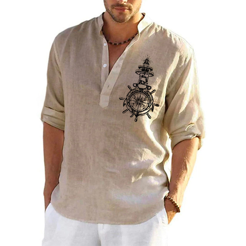 Herren Leinenhemd mit maritimem Steuerrad-Design Aliams