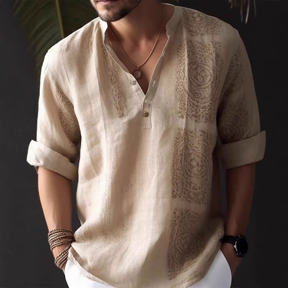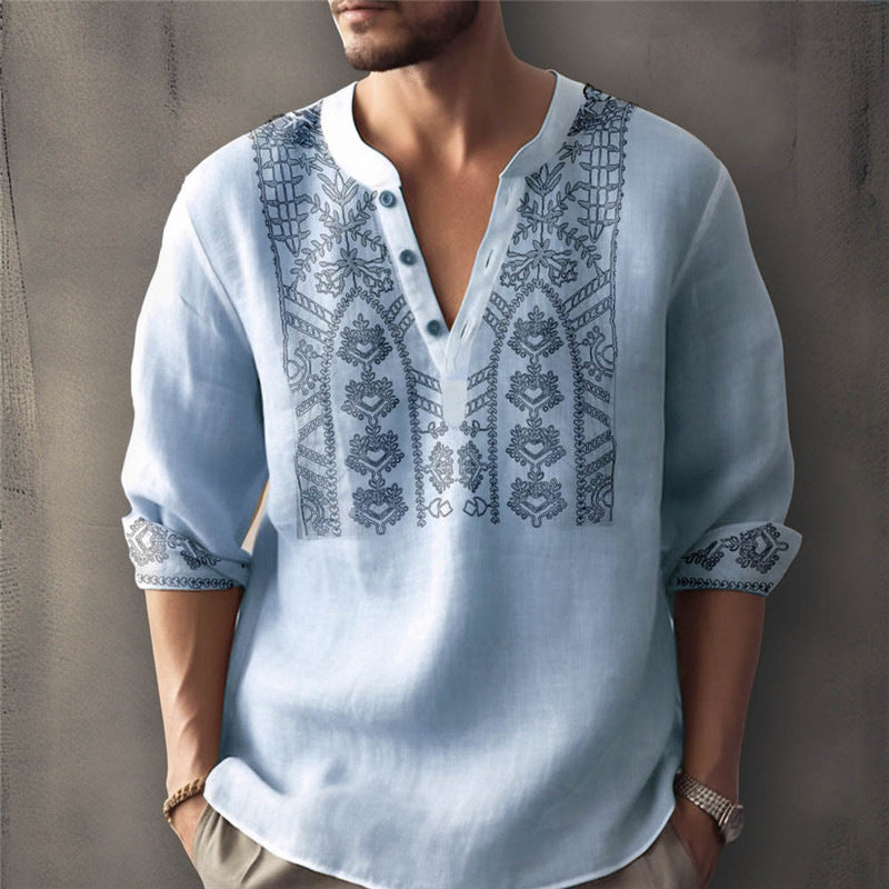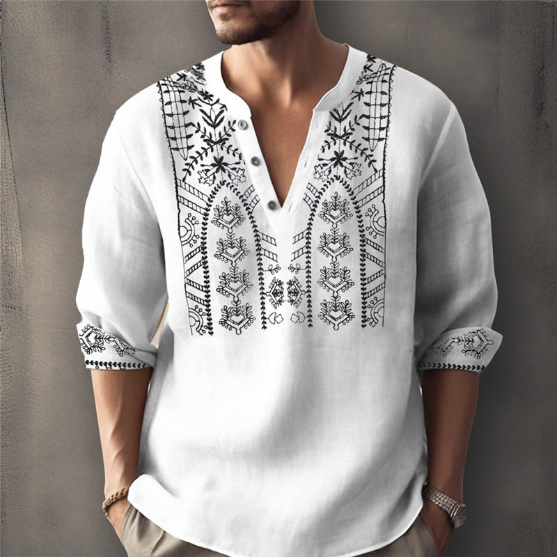 Herren Leinenhemd mit traditionellem Handstickdesign Aliams