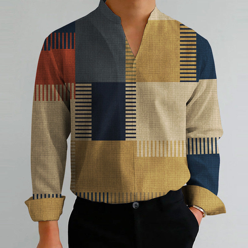 Herren Langarmhemd mit kreativem Patchwork-Design Aliams