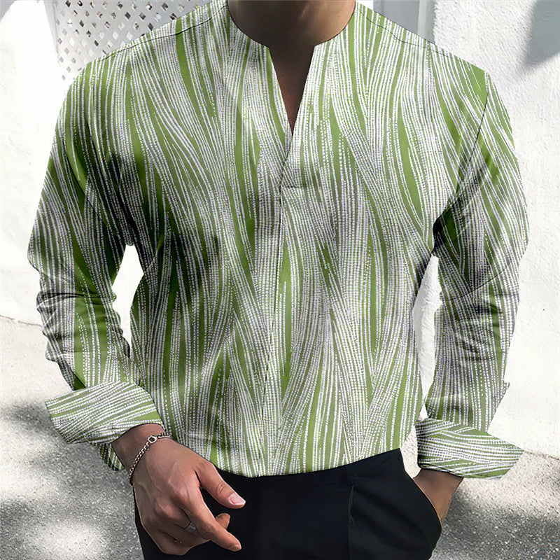 Herren Langarmhemd mit modernem V-Ausschnitt und strukturiertem Streifenmuster Aliams