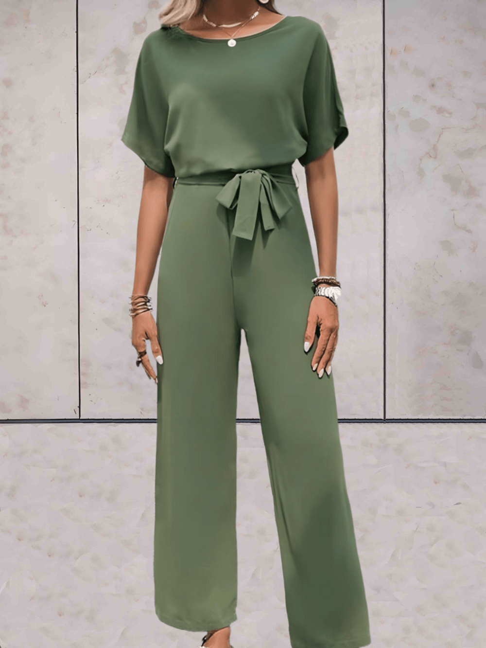 Der Aliams Jumpsuit ist mühelos schick und verfügt über einen stilvollen Gürtel und kurze Ärmel, was ihn zu einem vielseitigen Kleidungsstück für lässige und elegante Anlässe macht. Dieser Jumpsuit vereint Komfort und Mode in einer schmeichelhaften Silhouette.