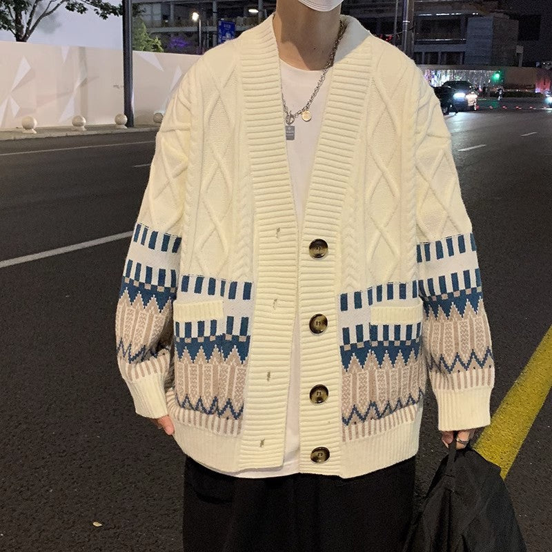 Herren Strickjacke mit modernen Mustern und praktischen Taschen Aliams