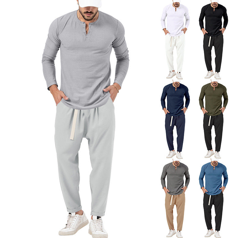 Herren bequeme Langarmshirt und Sporthose Set Aliams