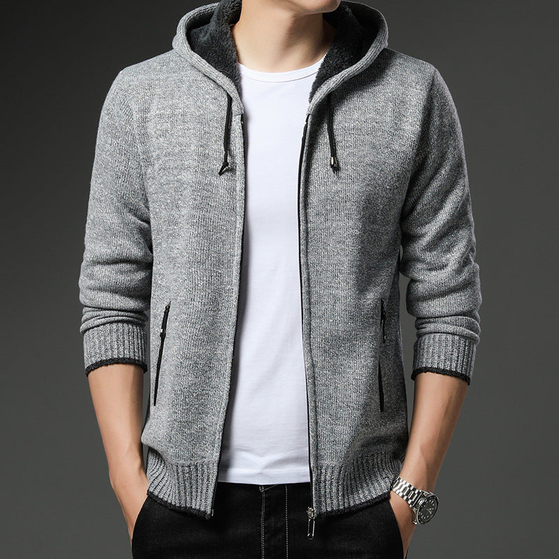 Herren bequeme Kapuzenjacke mit strukturiertem Innenfutter und Reißverschlusstaschen Aliams