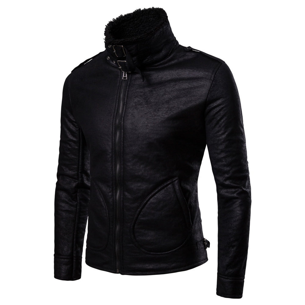 Herren Bikerjacke mit Teddyfutter und hohem Kragen Aliams