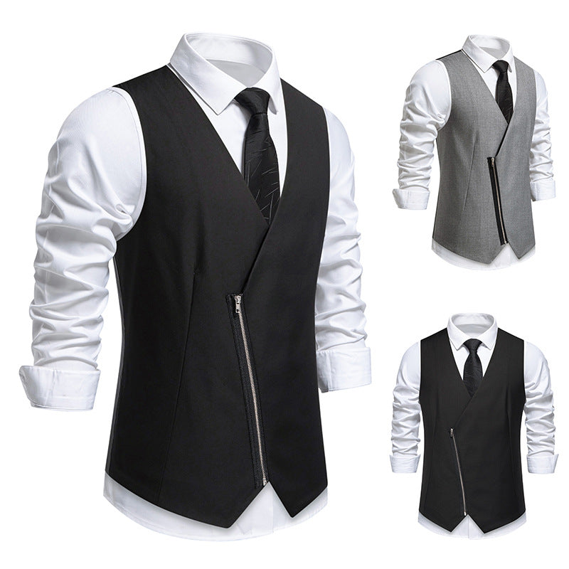 Herren elegante Anzugweste mit modernem Schnitt und praktischen Reißverschlüssen Aliams