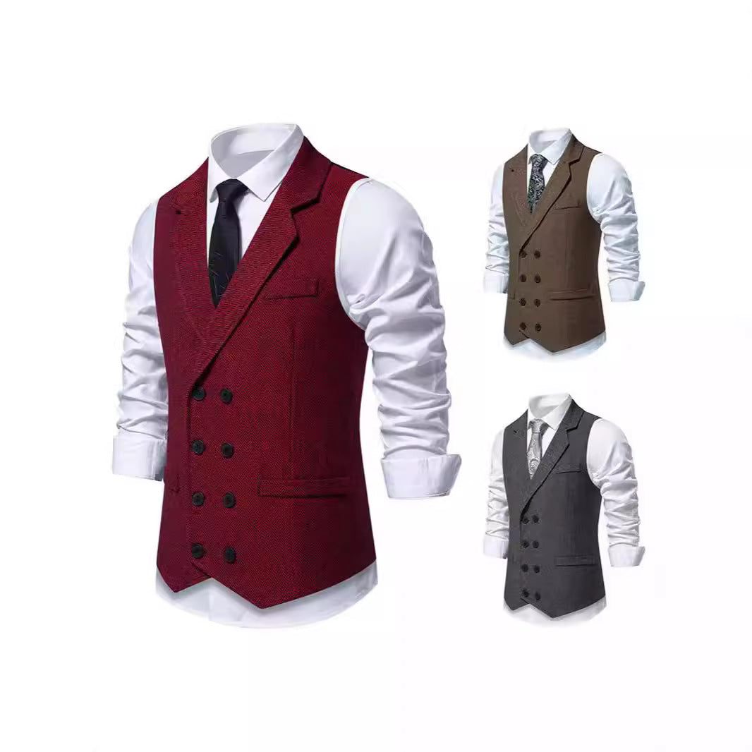 Herren elegante Anzugweste mit doppelt knöpfbarem Design und praktischen Taschen Aliams