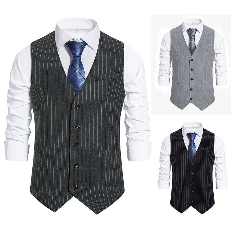 Herren elegante Anzugweste mit feinen Streifen und praktischen Taschen Aliams