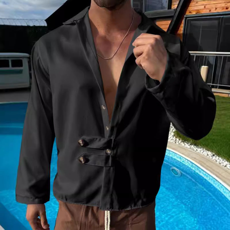 Herren elegante Langarmbluse im chef-typischen Design mit Knopfdetails Aliams