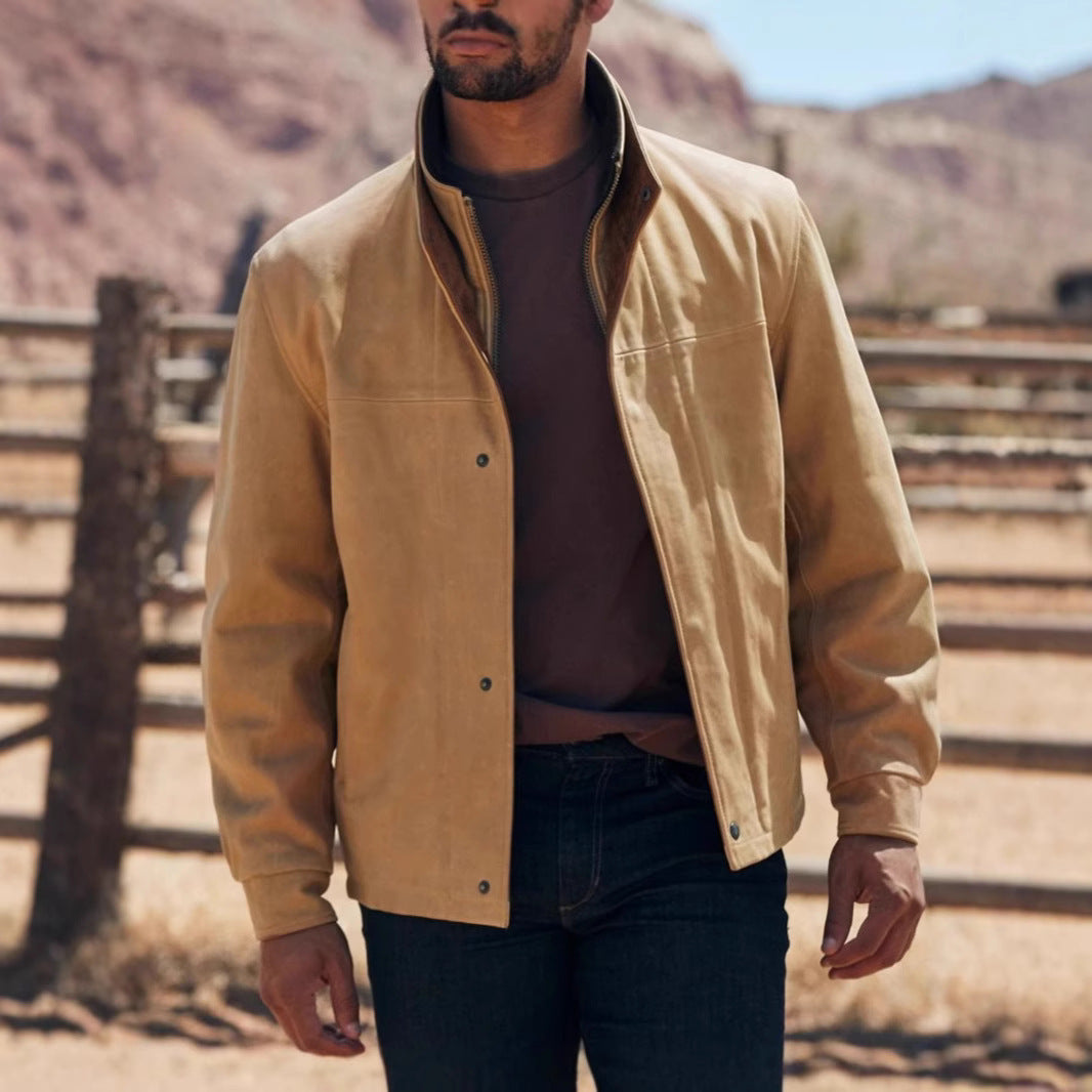 Herren elegante Lederjacke mit hohem Kragen und dezenten Details Aliams