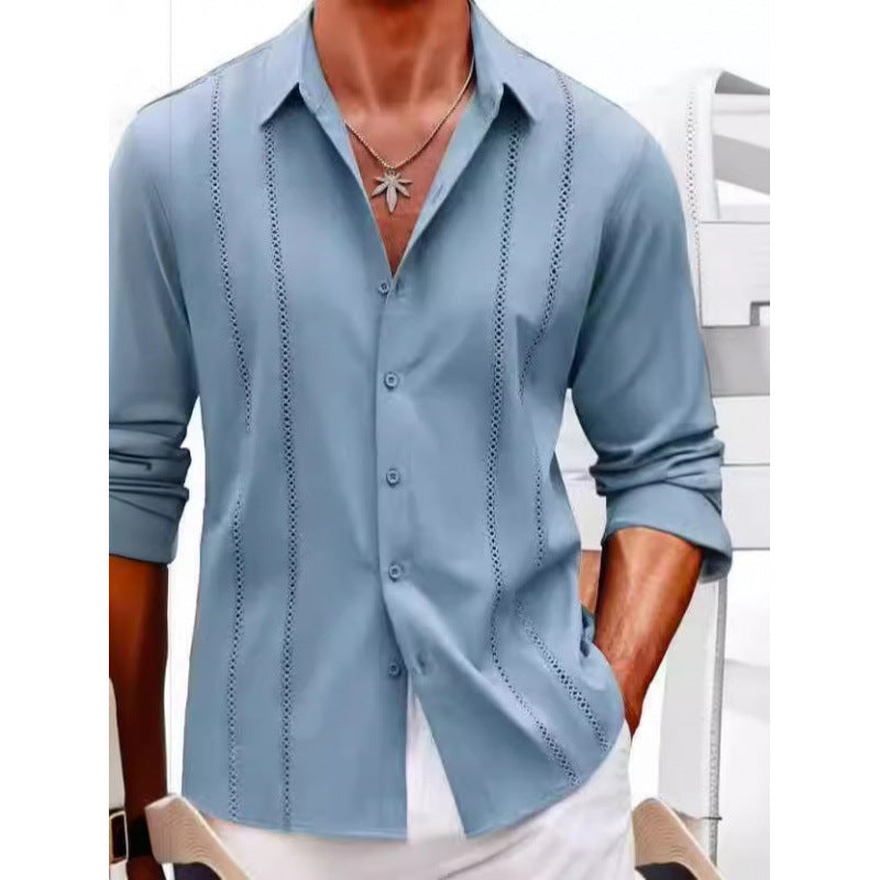 Herren elegante Langarmbluse mit strukturiertem Design Aliams