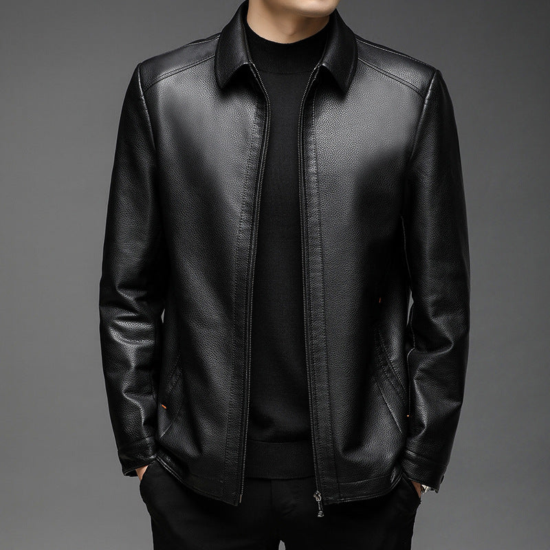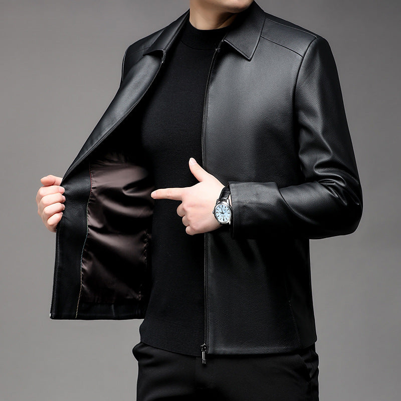Herren elegante Lederjacke mit minimalistischen Design und steigendem Kragen Aliams