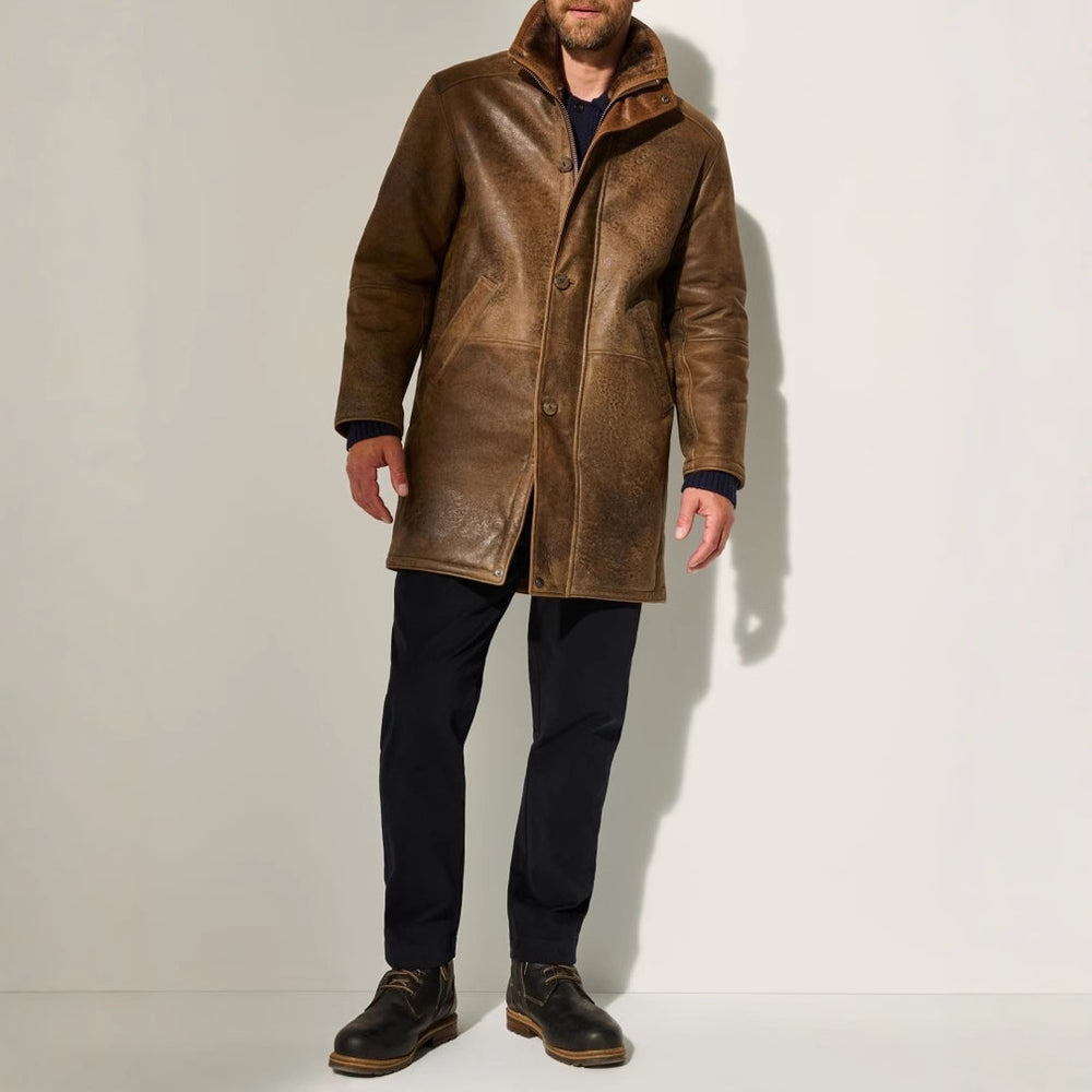 Herren elegante Lederjacke mit hochgezogenem Kragen Aliams