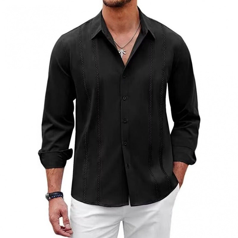 Herren Elegante Langarmbluse mit feinen Stickdetails Aliams