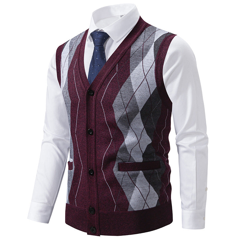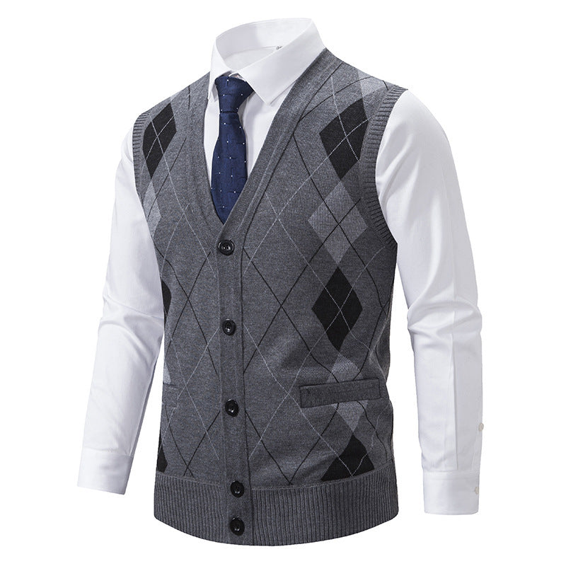 Herren elegante Strickweste mit modernem Rautenmuster und praktischen Taschen Aliams