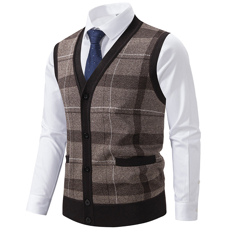 Herren elegante Strickweste mit V-Ausschnitt und praktischen Knöpfen Aliams