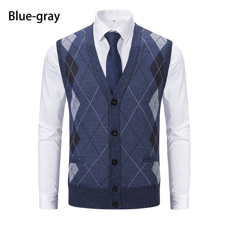 Herren elegante Strickweste mit klassischem Rautenmuster und praktischen Taschen Aliams
