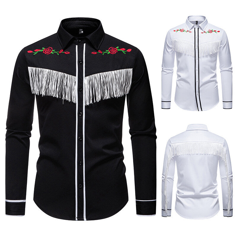 Herren elegante Westernbluse mit Fransen und bestickten Motiven Aliams
