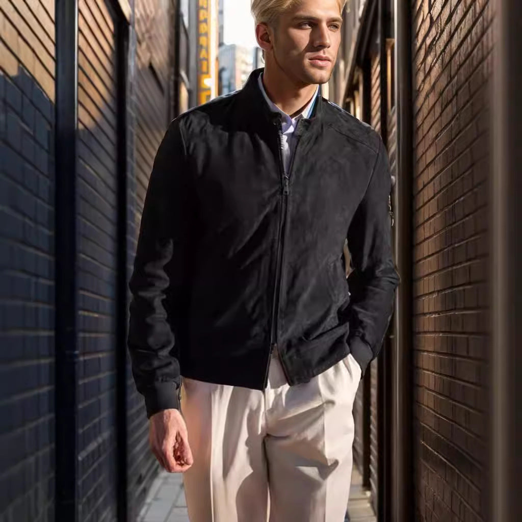 Herren elegante Wildlederjacke mit Stehkragen und seitlichen Eingrifftaschen Aliams
