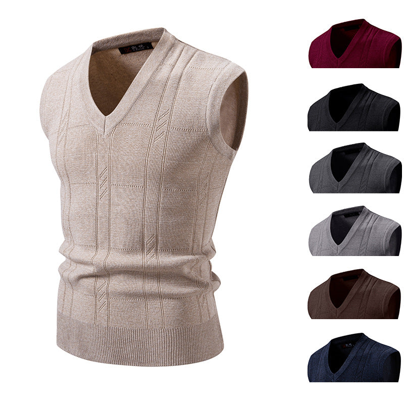 Herren eleganter ärmelloser Pullover mit V-Ausschnitt und strukturiertem Muster Aliams