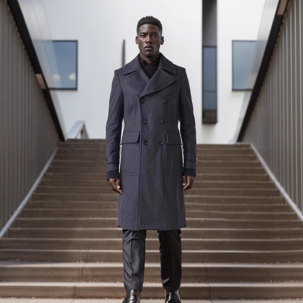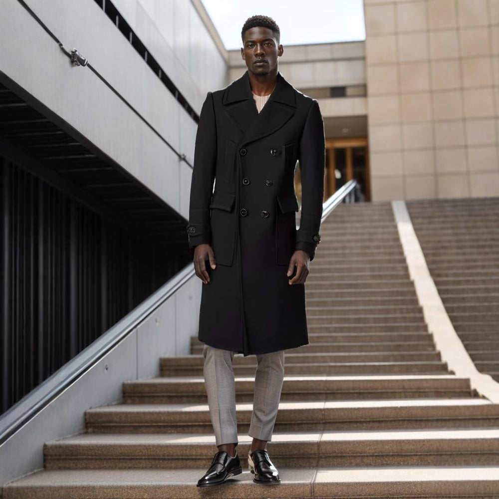 Herren eleganter Doppeltailleur-Mantel mit stylischen Knopfdetails Aliams