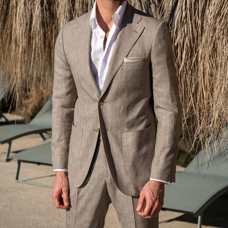 Herren eleganter Leinenanzug mit feinem Schnitt und praktischen Taschen Aliams