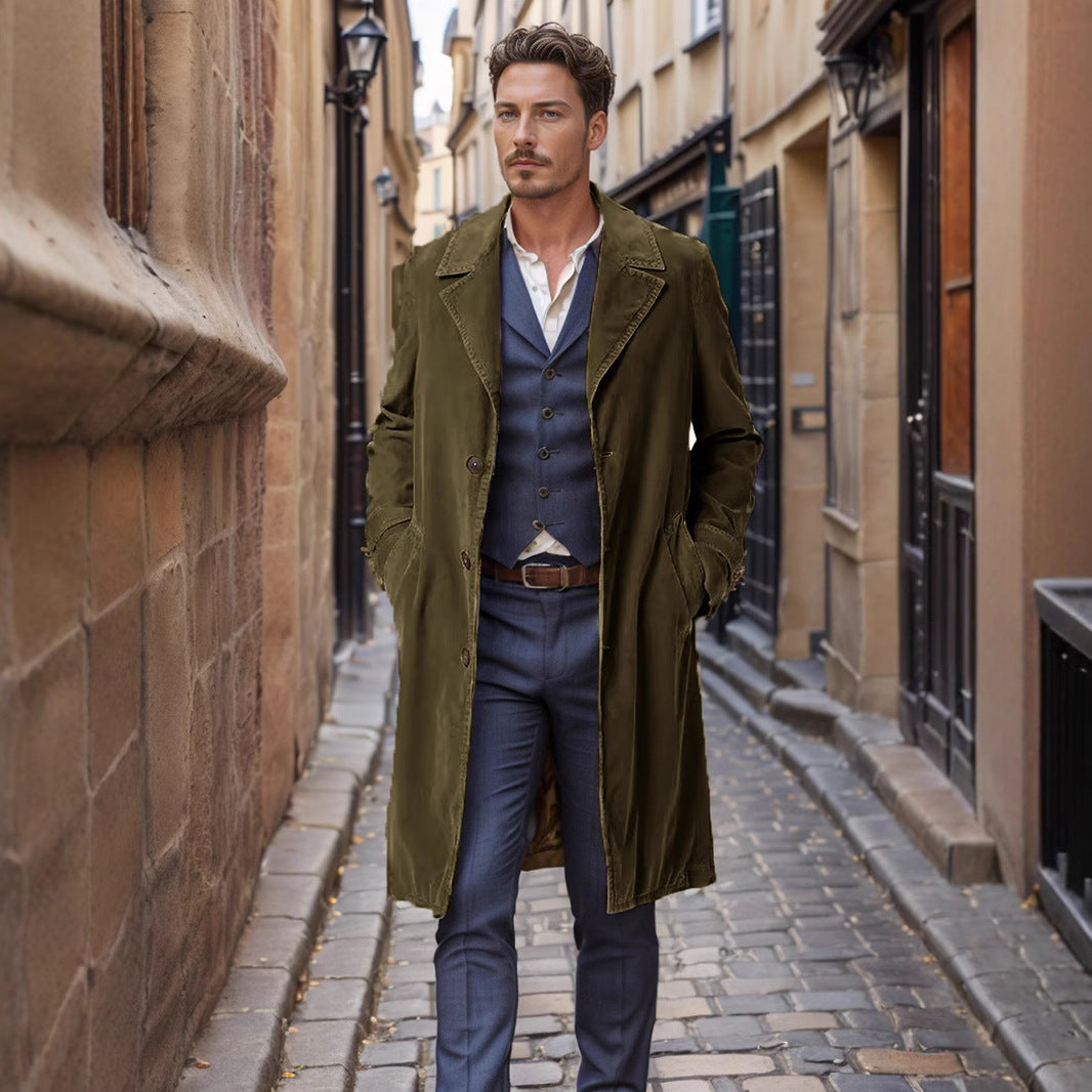 Herren Eleganter Langmantel mit modischen Knöpfen und hochwertigem Stoff Aliams