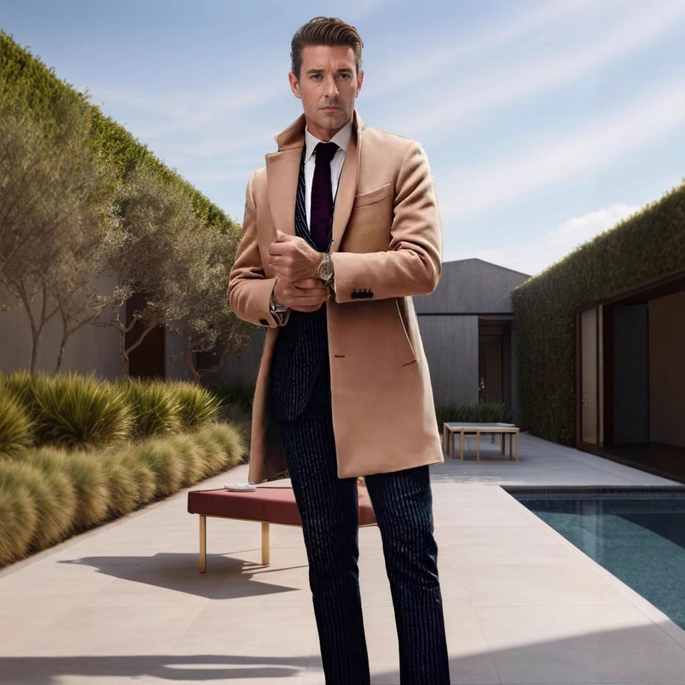 Herren eleganter Langmantel mit strukturiertem Design Aliams