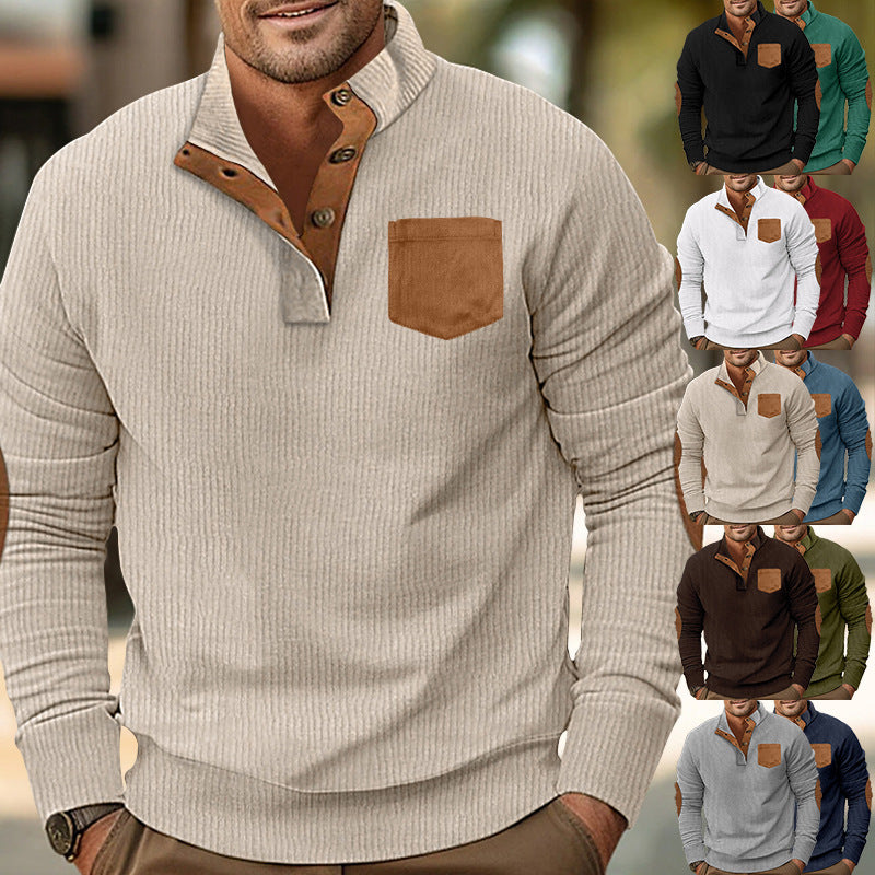 Herren eleganter Strickpullover mit Kragen und Taschen Aliams