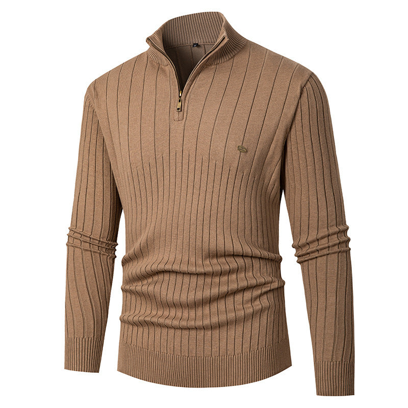 Herren eleganter Strickpullover mit halbem Reißverschluss und feinem Rippdesign Aliams