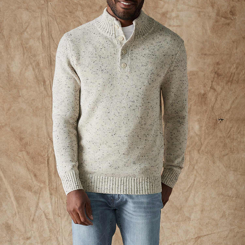 Herren eleganter Strickpullover mit Stehkragen und Knopfleiste Aliams